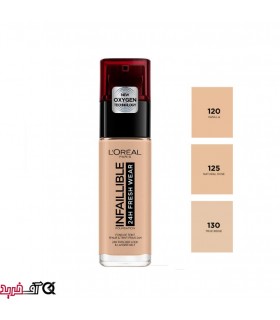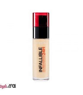 کرم پودر لورال مدل اینفالیبل ۲۴ ساعته L'Oreal Infallible 24h Foundation محفظه شیشه‌ای پمپی با حجم 30 میل رنگبندی عالی در 3 شماره کاربردی پوشش دهی بالا با ماندگاری 24 ساعته بافت سبک و نرم با ایجاد حالت مات آبرسان و...