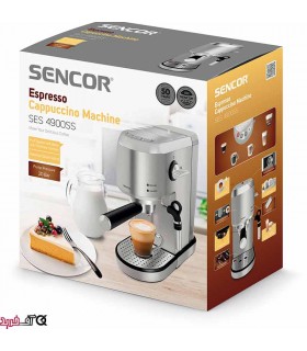 اسپرسوساز سنکور مدل Sencor SES 4900SS توان 1400 واتدارای فشار بخار 20 باربدنه‌ی کاملا استیل و مقاومدارای نازل بخارمخزن 1.5 لیتری آبرنگ سیلوروزن 4.1 کیلوگرم